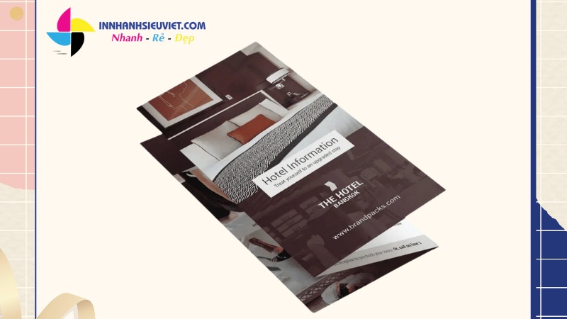 Brochure dạng gấp là kiểu ấn phẩm được sử dụng khá rộng rãi trong lĩnh vực in ấn. Với khách sạn, dạng brochure này thường phù hợp với nhu cầu giới thiệu nhanh, phát tại quầy lễ tân, sự kiện hoặc dùng kèm trong các chương trình quảng bá ngắn hạn.