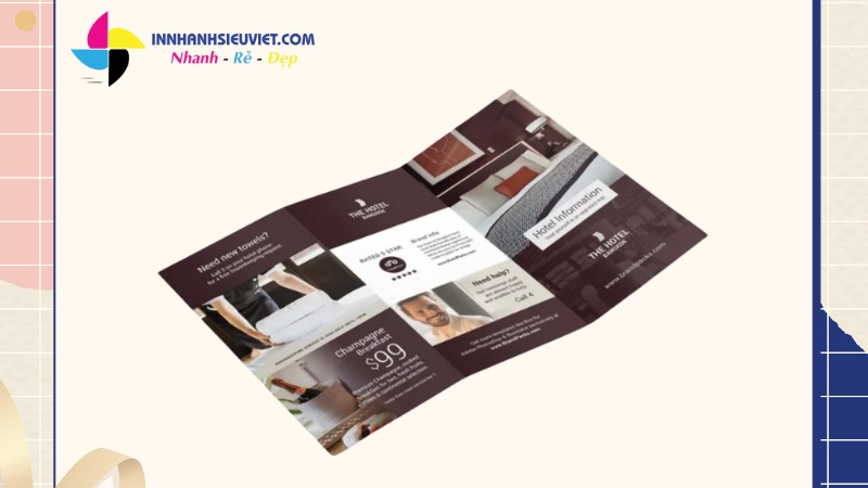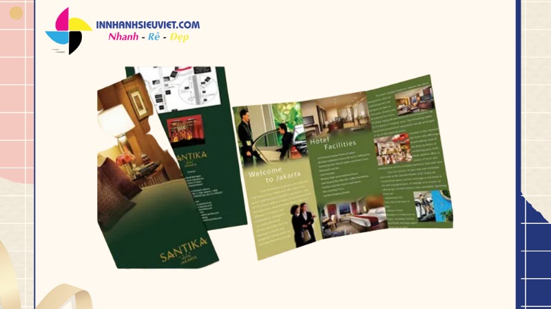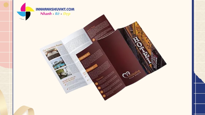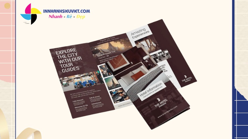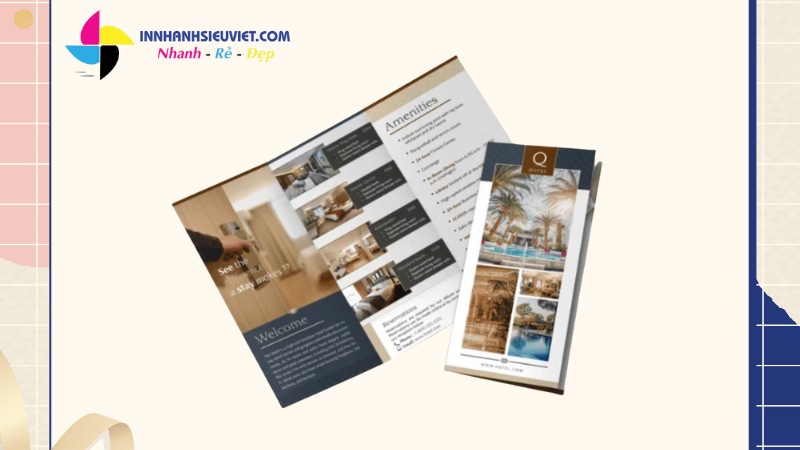 Dù diện tích thể hiện không nhiều, brochure gấp vẫn giúp khách sạn tạo dấu ấn chuyên nghiệp hơn so với việc không có ấn phẩm giới thiệu.