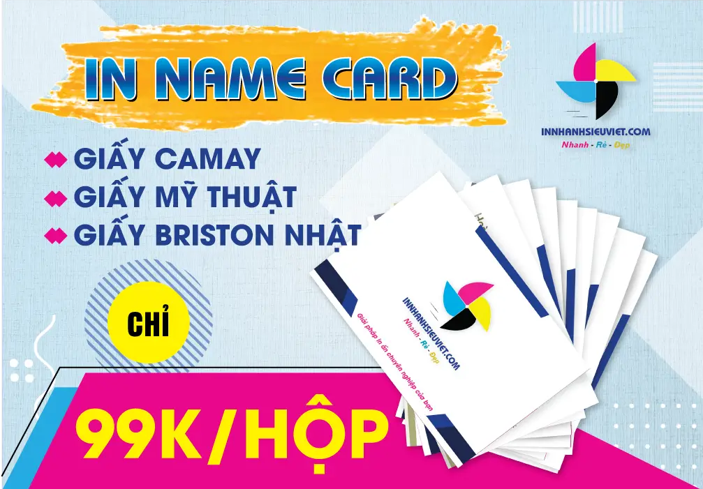In Nhanh Siêu Việt mang đến cho khách hàng dịch vụ thiết kế và in name card – in danh thiếp theo yêu cầu, giá tốt. In trên nhiều chất liệu, từ dày đến mỏng, từ đơn giản đến sang trọng với nhiều kiểu dáng kích thước. Sử dụng công nghệ in hiện đại như in kỹ thuật số, in offset…
